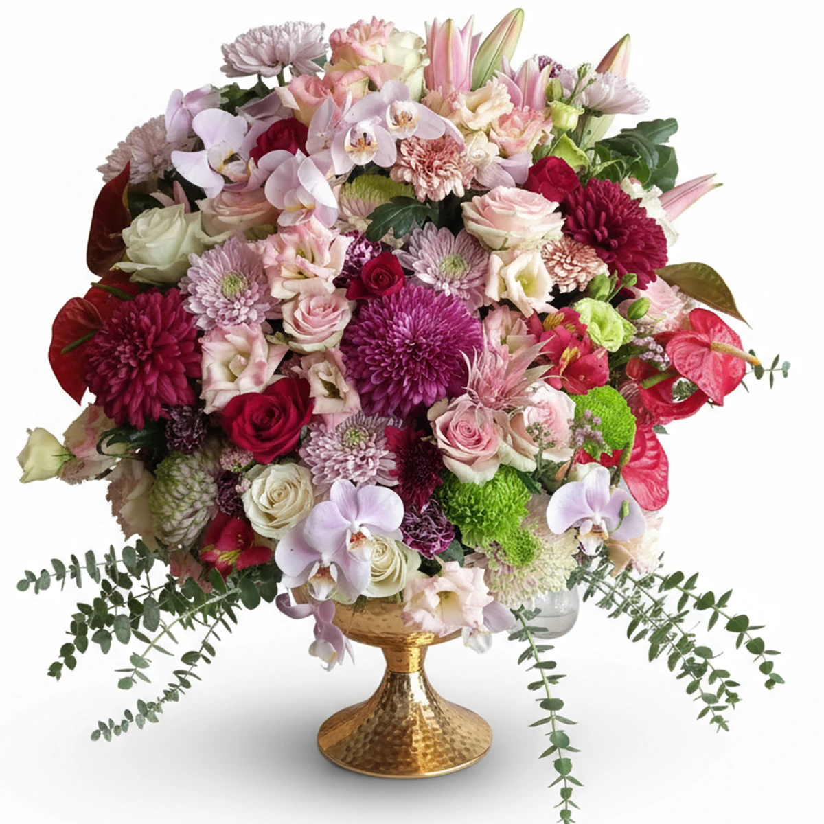 Altın Kadeh Aranjman, altın detaylı tasarımıyla modern sadeliği vurgulayan özel bir parçadır. Yumuşak renk geçişleri ve özenli formu, bulunduğu alana dengeli bir şıklık kazandırır. Mevsime göre bazı çiçekler tasarıma uygun şekilde değişiklik gösterebilir. Buketlerimiz özel solüsyonu sayesinde 10 güne kadar tazeliğini korur.