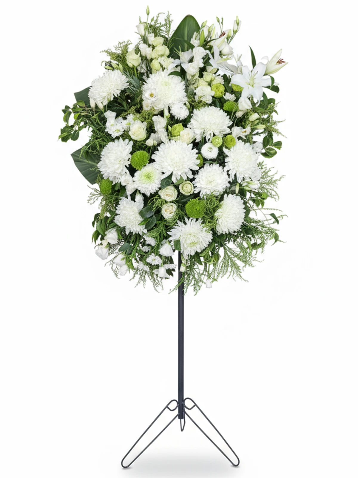 Beyaz ferforje, beyaz çiçeklerin yalın ve etkileyici formu her ortama aydınlık bir dokunuş kazandırır. Mevsime göre bazı çiçekler tasarıma uygun şekilde değişiklik gösterebilir.