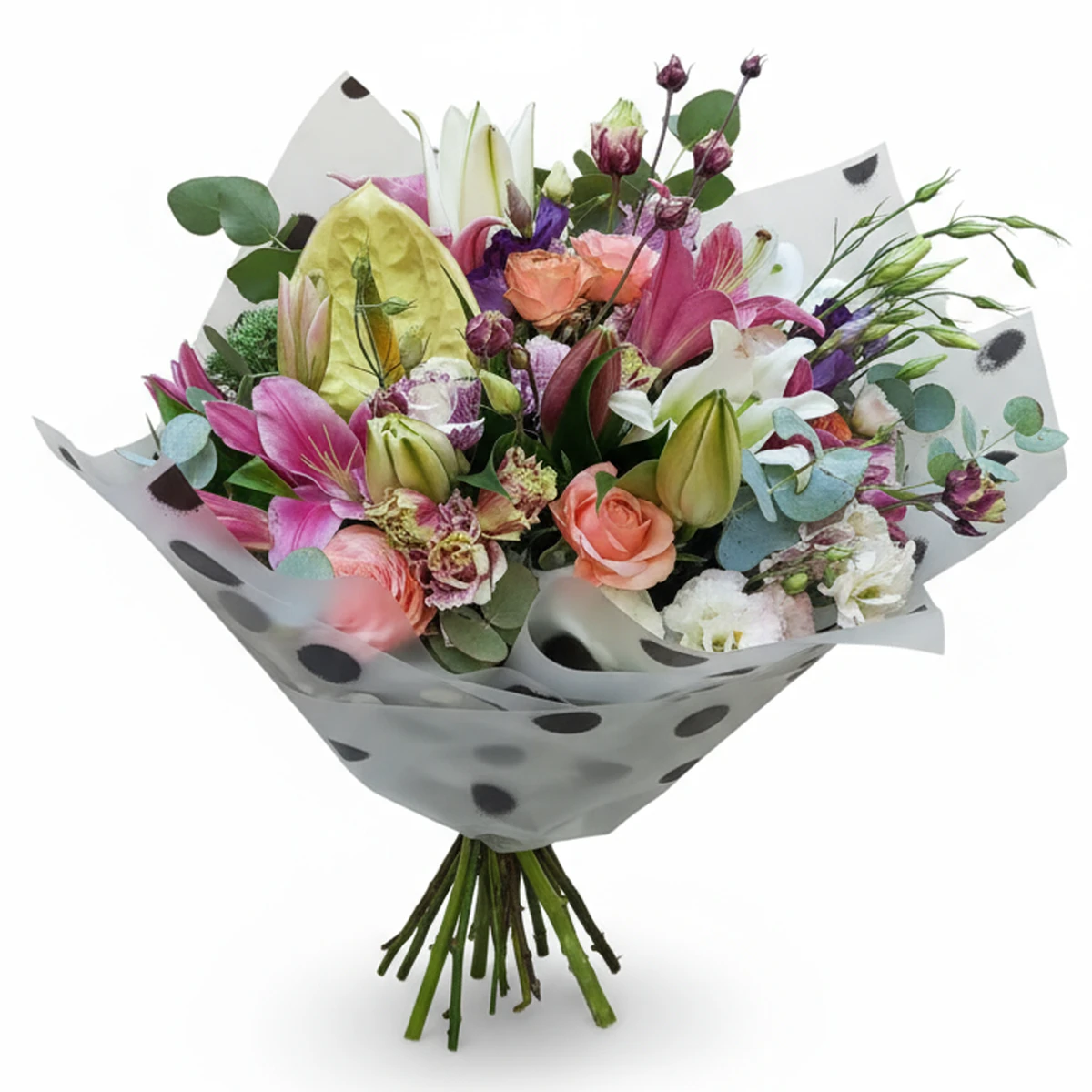 Çiçeklerimizin tazeliğini garanti edebilmek için zaman zaman buket görsellerinden form olarak değil ama içerik olarak farklılık gösterebilir.